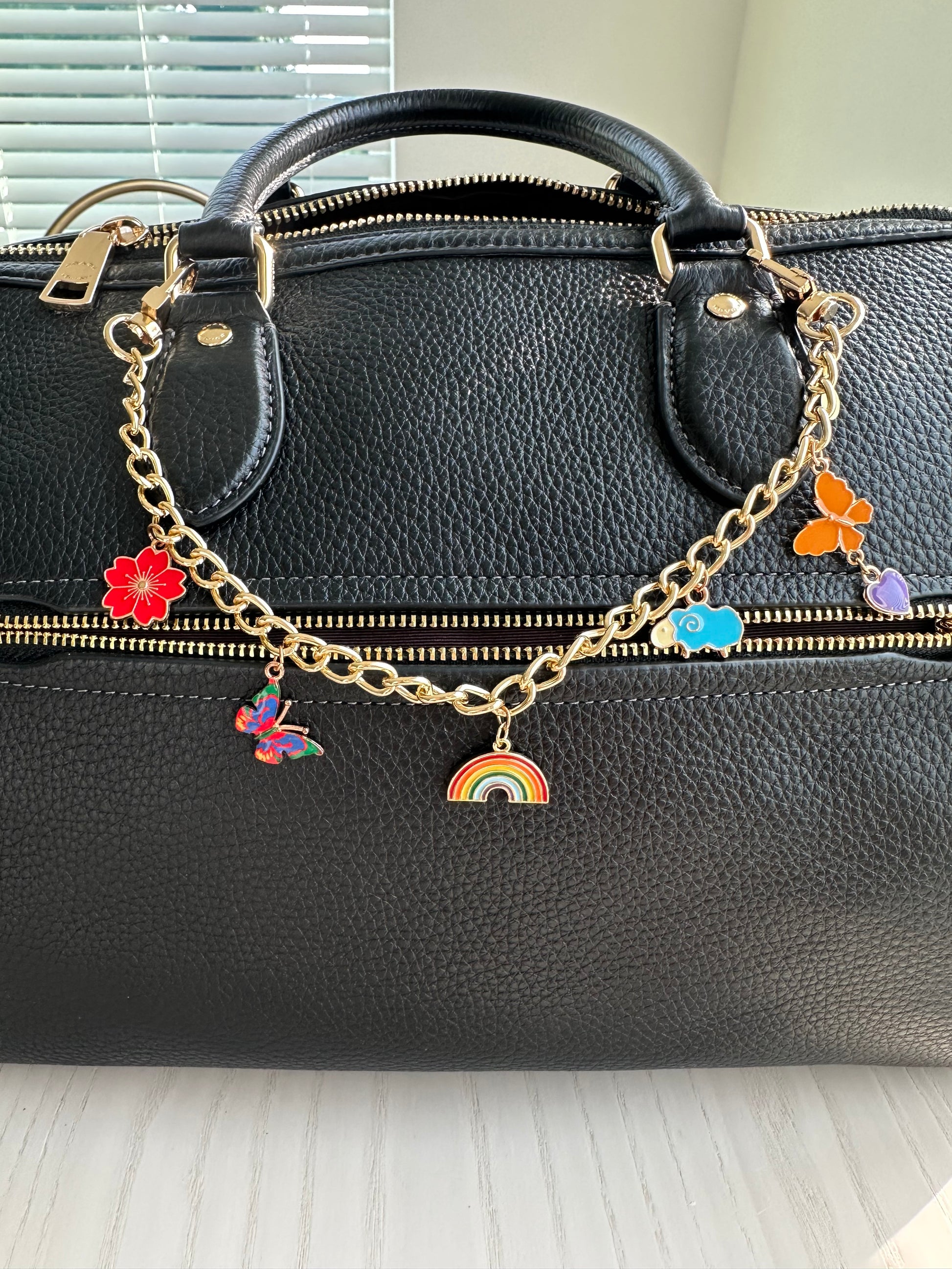Adorn your handbag with the rainbow charm chain. Wear multiple ways or layer with other chains.